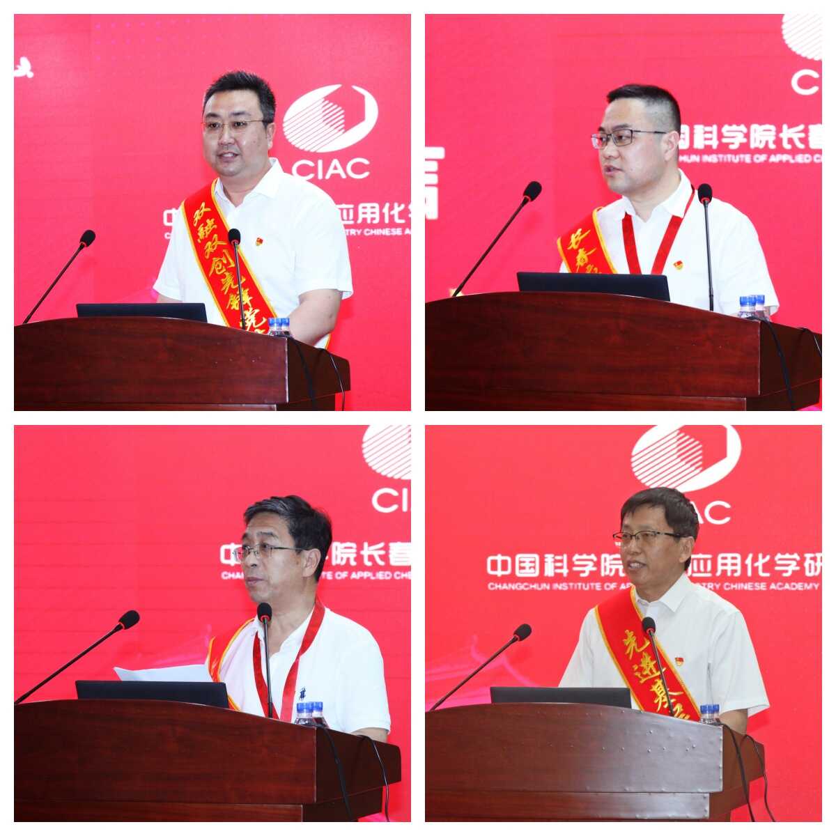 稀土第二党支部支委邱鑫研究员、稀土第一党支部党员刘伟研究员、生态第二党支部书记张会良研究员、复材第一党支部书记康传清研究员作为获奖代表分别在大会上发言。他们表示,将始终以习近平新时代中国特色社会主义思想为指引,时刻牢记党员的初心与使命,心系“国家事”、肩扛“国家责”,认真落实院党组和所党委各项工作要求,在科研工作中充分发挥先锋模范作用,为研究所加快抢占科技制高点贡献力量。