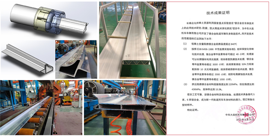 依托国家重点研发计划和长春市科技发展计划智能动车组专项,与中车长客和中车大连机车合作开发了智能动车组用轻量化阻燃镁合金材料及型材,低成本阻燃镁合金起燃温度超过840℃,经自修复防腐技术,构件盐雾寿命超过3000小时。制备的挤压阻燃镁合金材料屈服强度达到220MPa,抗拉强度达到436MPa,延伸率达到15.3%。工艺可靠,镁合金材料及其相关制备技术具备替代5系、6系铝合金,成为新一代列车车身的潜力。
